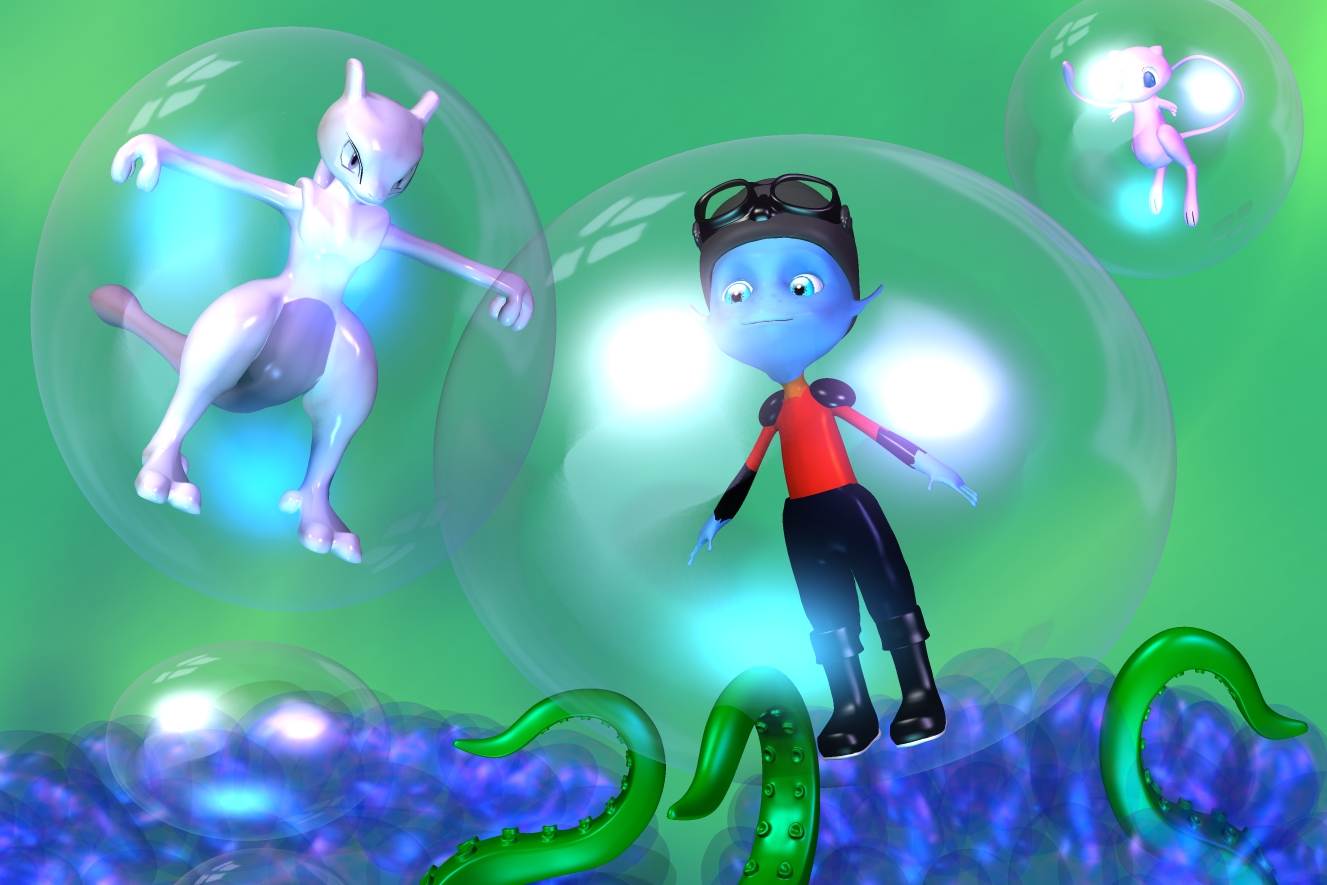 Bubble Dreams is a "Escape from Planet Earth" and "Pokemon" Crossover FanArt with the characters Kip Supernova, Mew and Mewtwo.